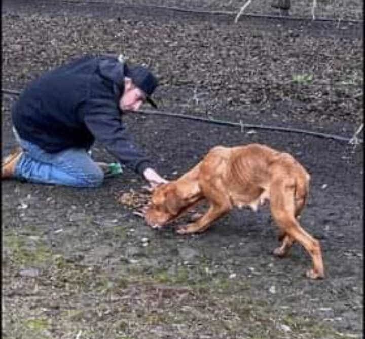 In late January of 2024 Willow was found scared and starving in an orchard. She appeared as if she recently had puppies, the area was searched for puppies but none were found. After a month of food and care she weighed 62 pounds. She was still very underweight. Willow was very timid and skittish. Her foster mom took it slow and let Willow choose the pace for being touched or handled.